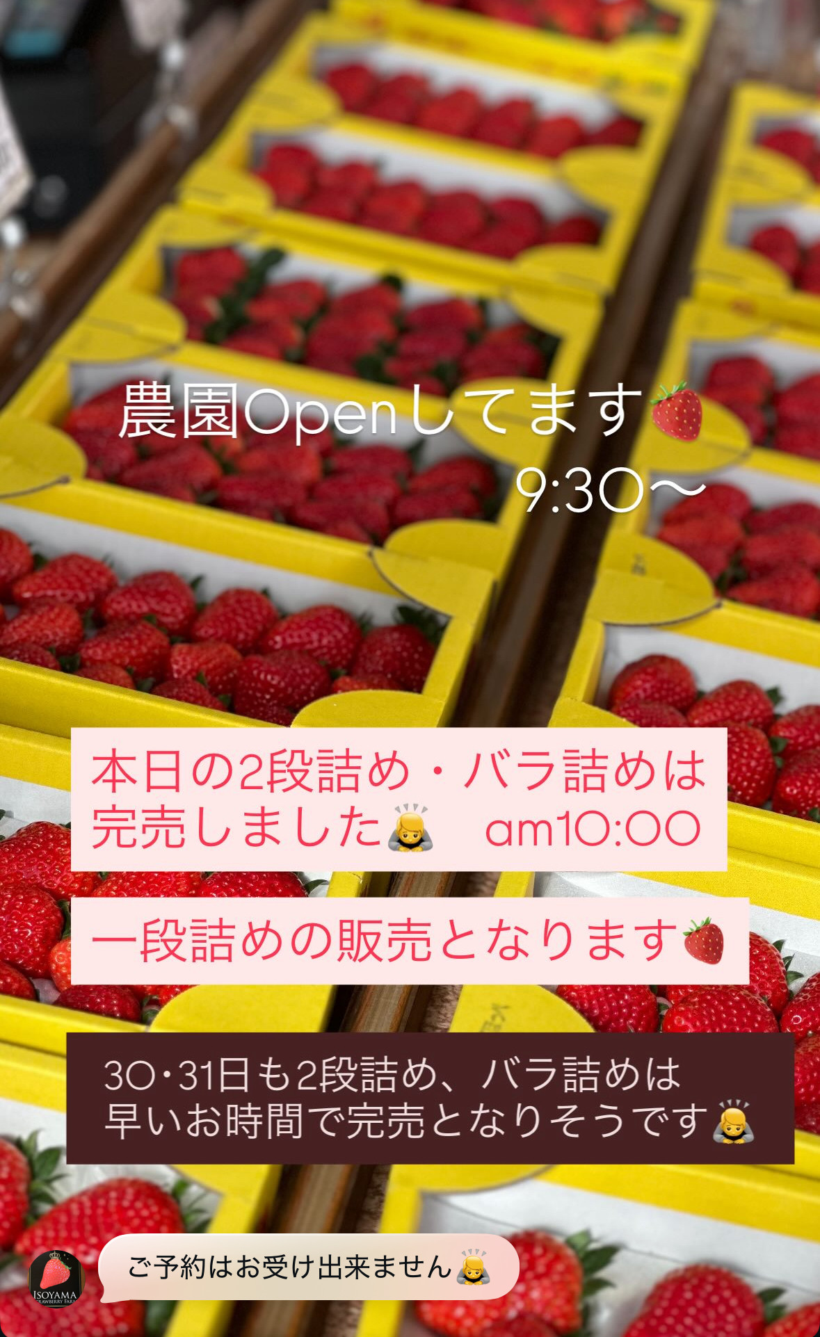 しかし、2段詰めとバラ詰めは本日分が完売しております。