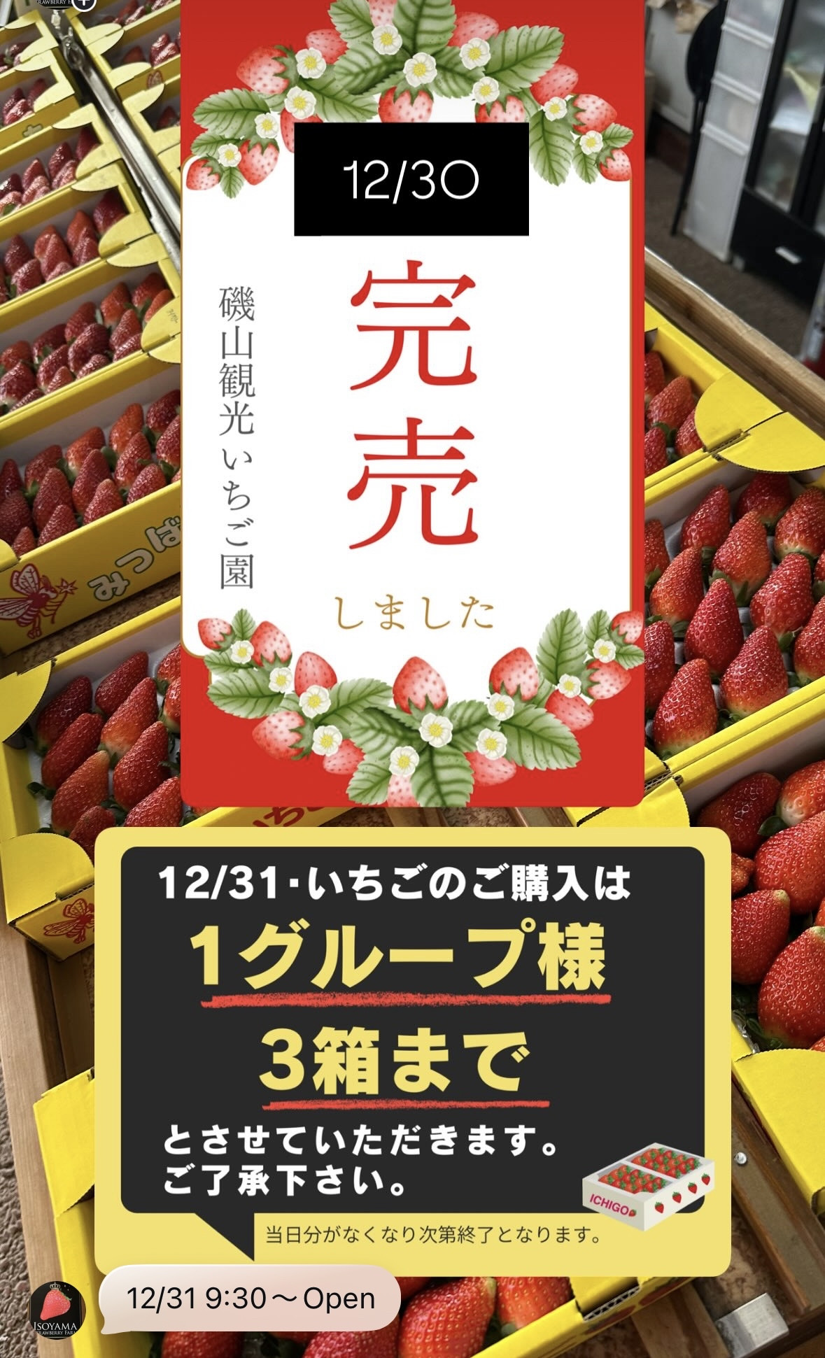 明日31日も9:30より販売開始致しますが1グループ様3箱までとさせていただきます。