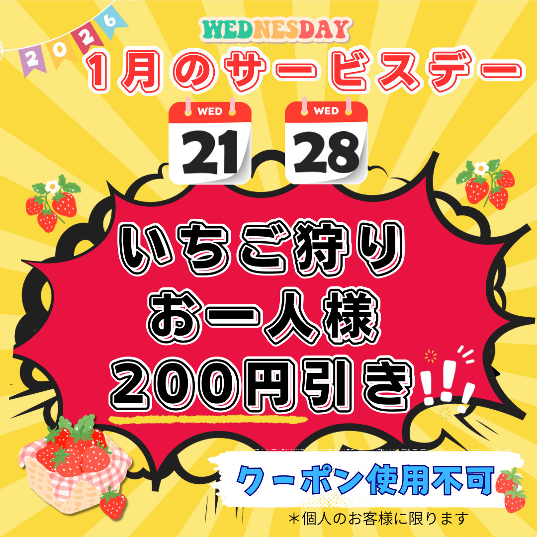 いちごが一番おいしいこの時期にぜひお得なサービスデーをご利用ください。