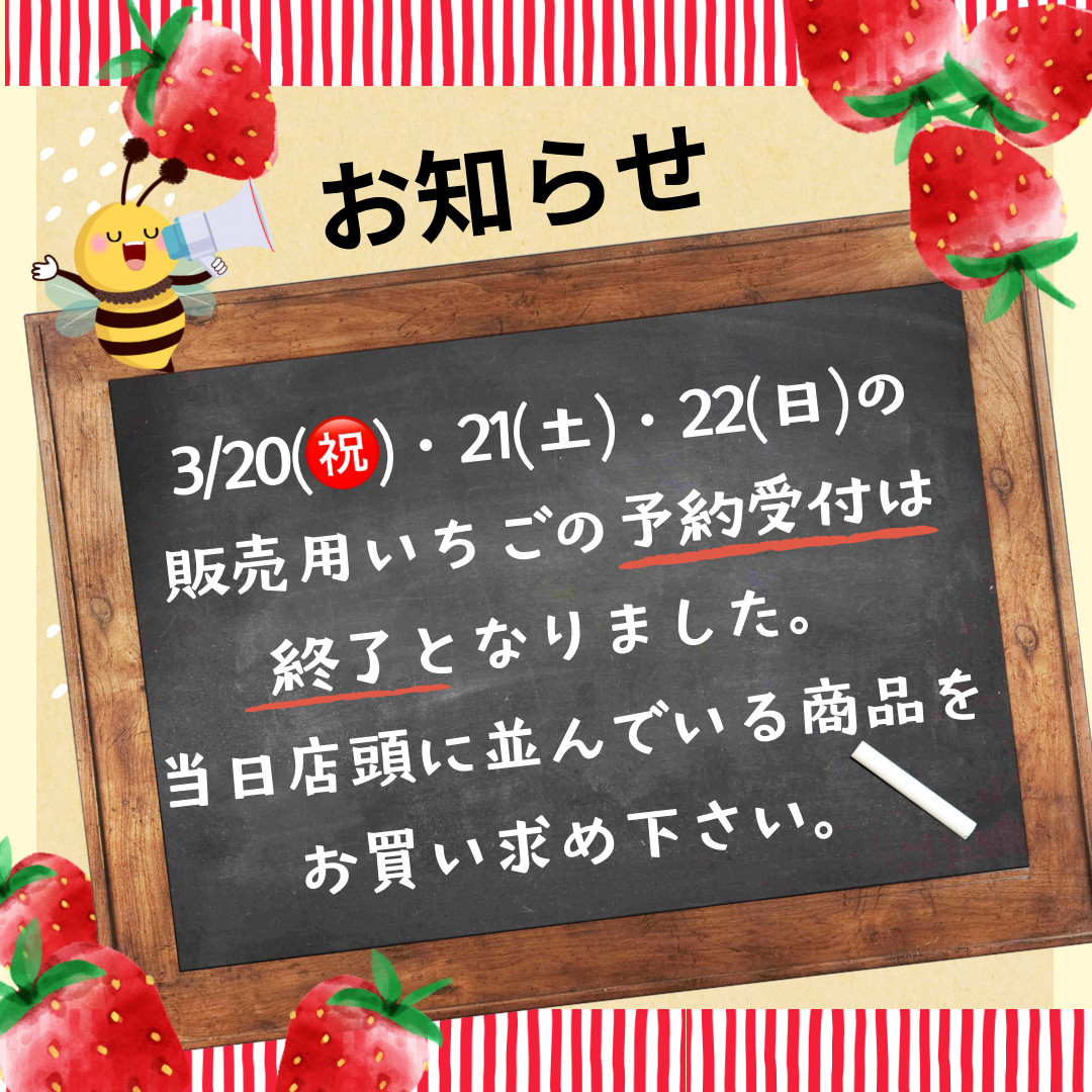 お彼岸で三連休ですので、いちごの品薄が予想されます。